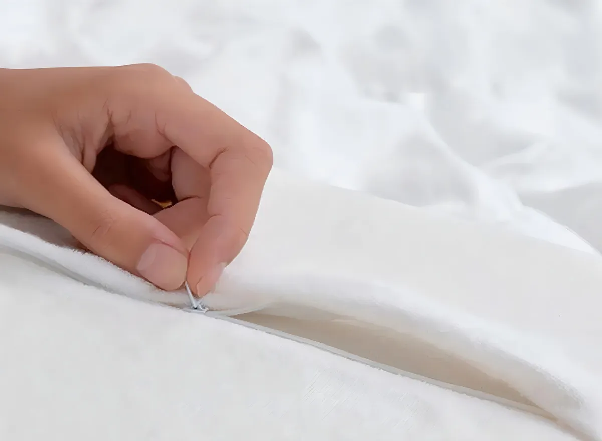 Cuenta con funda de toalla desmontable y lavable, es antiácaros y antibacteriana, y mantiene su forma original con el uso, garantizando durabilidad y confort constante.