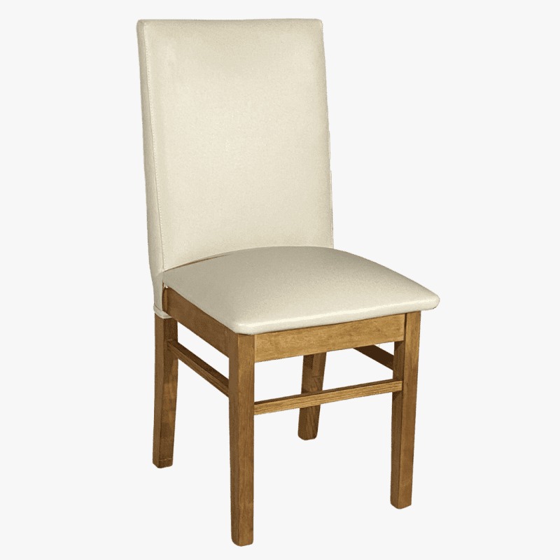 Asiento tapizado en ecocuero o chenille (consultar). Madera maciza diferentes lustres (consultar), patas 2×2 pulgadas. Ancho: 42 cm. profundidad: 45 cm. Altura: 95 cm. Silla con uniones en espiga y escople.