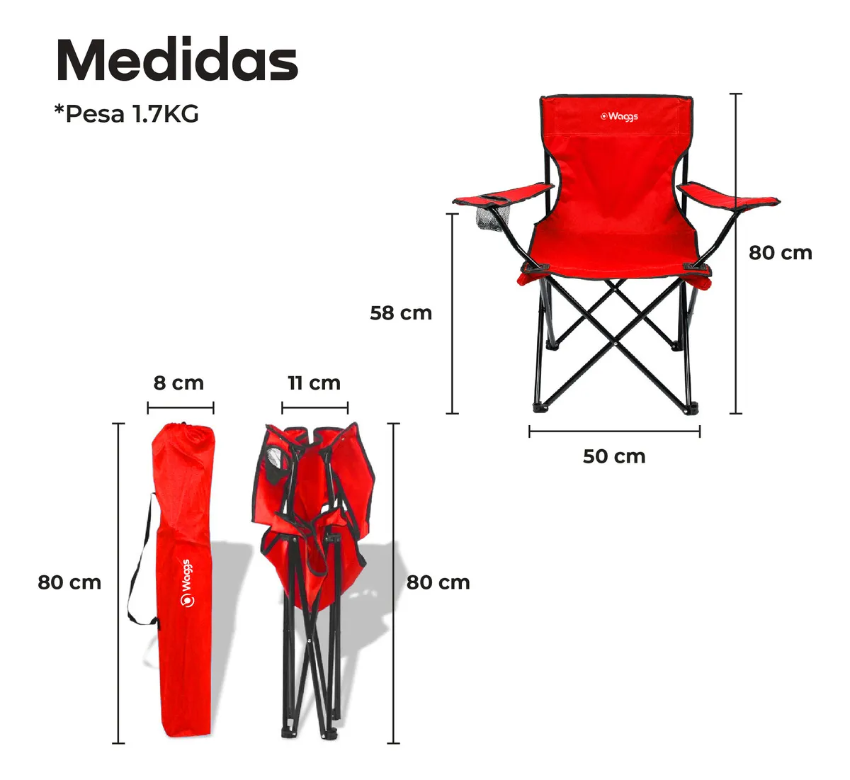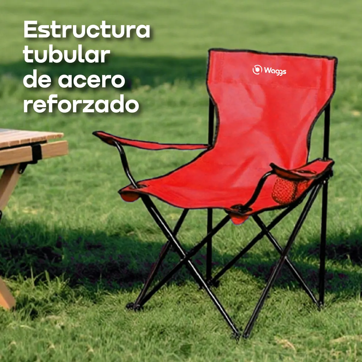 La silla director de camping WAGGS redefine la comodidad portátil. Fabricada con materiales resistentes y diseño funcional, es la compañera ideal para camping, playa, pesca o jardín. Su estructura metálica reforzada y asiento de tela Oxford 600D garantizan soporte firme y durabilidad, una aliada práctica para tus momentos de relax al aire libre. Estructura de acero tubular de 16 mm: brinda firmeza y estabilidad sin agregar peso innecesario. Asiento y respaldo de tela Oxford 600D: material antidesgarro y fácil de limpiar, pensado para resistir el uso intensivo. Porta vaso incluido: todo al alcance de tu mano, ideal para mantener orden y comodidad. Diseño plegable liviano: con solo 1 kg de peso, se transporta y guarda sin esfuerzo.